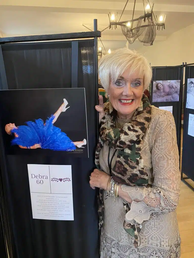 - “I did the 50 Over 50 Boudoir Exhibition because I wanted to give back to my community. I’m a breast cancer survivor, and I know how important it is to support research into this disease. The money raised from the 50 Over 50 Boudoir Exhibition will go towards funding life-saving research, and I’m so proud to be a part of that.” – Debbie S
